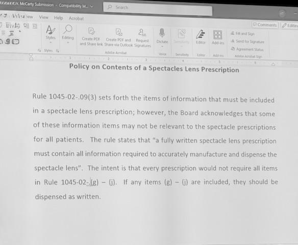 We respectfully ask that the Optometry Board consider rescinding this rule with an emergency rule to further discuss solutions that will best meet the protection of the general public without causing harm.